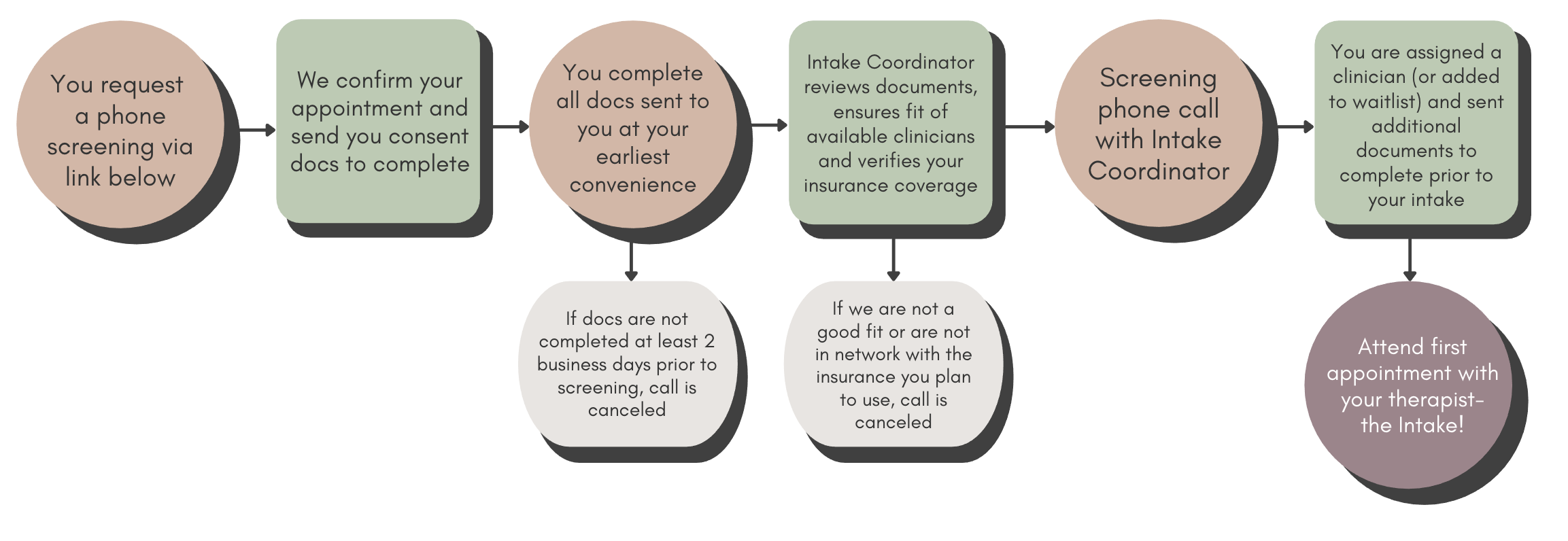 A phone screening with our Intake Coordinator is the first step of beginning services with us at Sprout Therapy PDX. Once we confirm your appointment time, we will send over forms that will need to be completed at least 2 business days prior to your screener. During your brief consult call, our Intake Coordinator will determine whether you’re a good candidate for our services and will work to match you with an appropriate clinician at our practice or add you to our waitlist.
